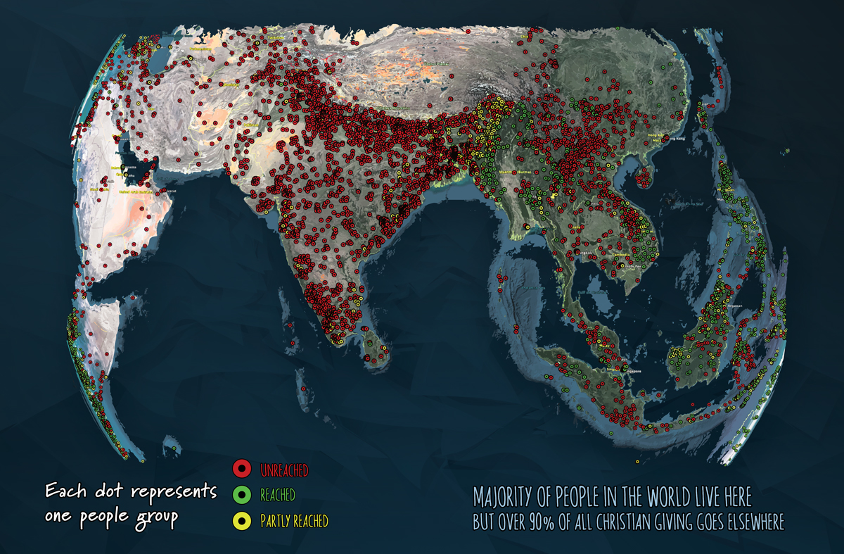 Every red dot on this map represents a people group that has not heard the Gospel. Our goal at Jesus For Asia is to reach the unreached, and so many groups of people have not even heard the name of Jesus. The purpose for this fund is to create a pool of resources to that will enable the people, tools and facilities needed to reach these people in darkness.